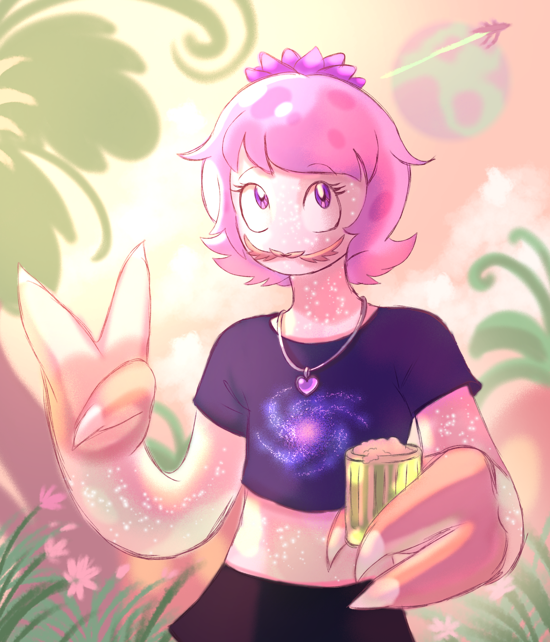 Стелла изначально не имела цветочка, вместо него был шипастый корешок. Но ей просто необходимо было принять себя, как пастельную джорту, чтобы на голове распустилась прекрасная астра.