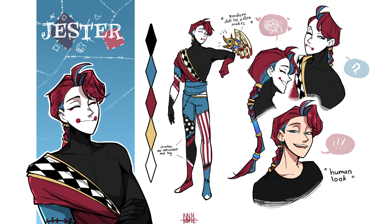 Хаотик нейтрал, как и все предыдущие Шуты, неизменно в поисках развлечения и новых впечатлений; помимо "боли" крайне плохо понимает концепцию "морального ущерба" ("Но ведь починено как было, в чем проблема?"), поэтому большинство жителей Королевства предпочитают с ним не связываться. Понятие красоты Джестеру заменяет интересность: хаос, ассиметрия, гипертрофия и далее по списку, порой это может быть полнейший гротеск или буквальное уродство, но пока оно цепляет взгляд и выбивается из массы - ему вкатывает. Как пример, Беатрис: просто сделать протезы было слишком просто, и теперь у нее целый гусеничный хвост (она не рада).