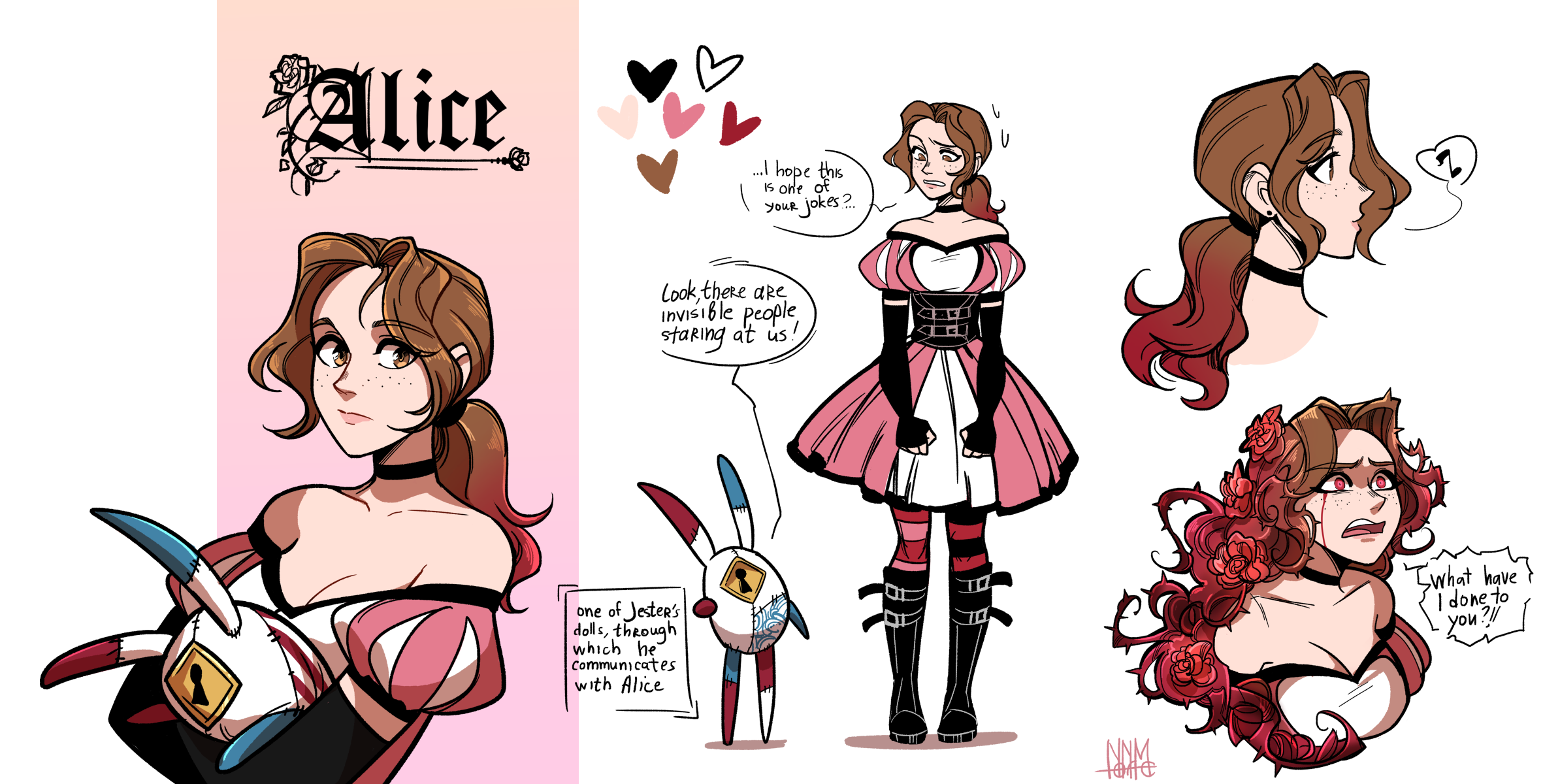Алиса довольно вспыльчива и с полпинка готова ввязаться в мордобой, но в современном обществе лупить даже откровенных козлов не принято, а потому она сдерживается как может: антистресс игрушки, успокоительное, дыхательные техники, даже ромашковый чай. Даже получается. Правда, в итоге это неизменно приводит к плачевным результатам - не найдя выхода в моменте, гнев постепенно накапливается и вырывается совершенно бесконтрольно. Из-за этого за два года жизни Алиса поменяла кучу неофициальных подработок (Матушка предоставила еду и кров, но не одежду/лекарства/этс) и так и не смогла по-настоящему с кем-то сблизиться. Она бы так и продолжила жить, если бы не нашла на улице странную игрушку и не попала бы в итоге в Королевство, в самый разгар эпохи Распада.