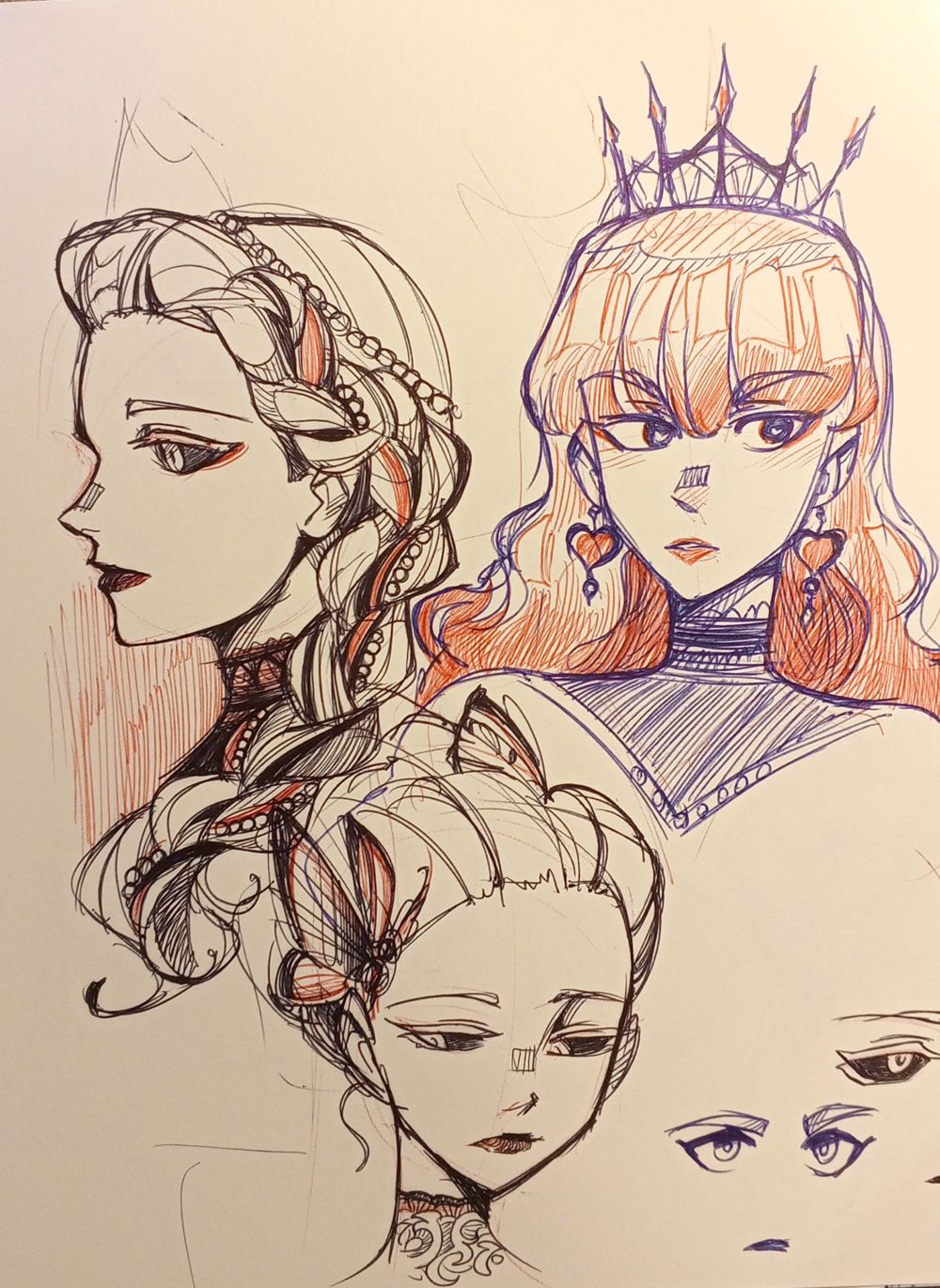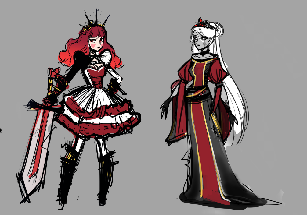 Ну, Королевы уже есть, но пока только в виде наработок, я все еще не могу определиться по деталям. А вот почему "нежная и добрая" Королева Сердец выглядит так, как будто готова откинуть меч и пойти врукопашную махаться за гаражи - сюжетные причины ∠( ᐛ 」∠)_