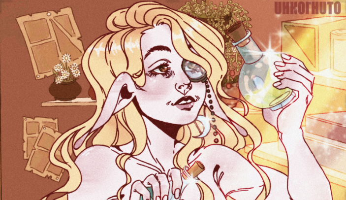 Иволга - тихая тень в лаборатории Марлина, чьё присутствие заметно лишь по шелесту сухих трав и лёгкому лекарственному запаху. Её золотистые волосы, чаще распущенны, и лишь иногда собираются в пучок. Карие глаза, холодные как осенний рассвет, выдают в ней существо, давно отрекшееся от мира ради науки. Она не ищет друзей, не поёт песен и не участвует в пирах - её стихия - это тишина, нарушаемая лишь шепотом реагентов и скрипом пергамента.