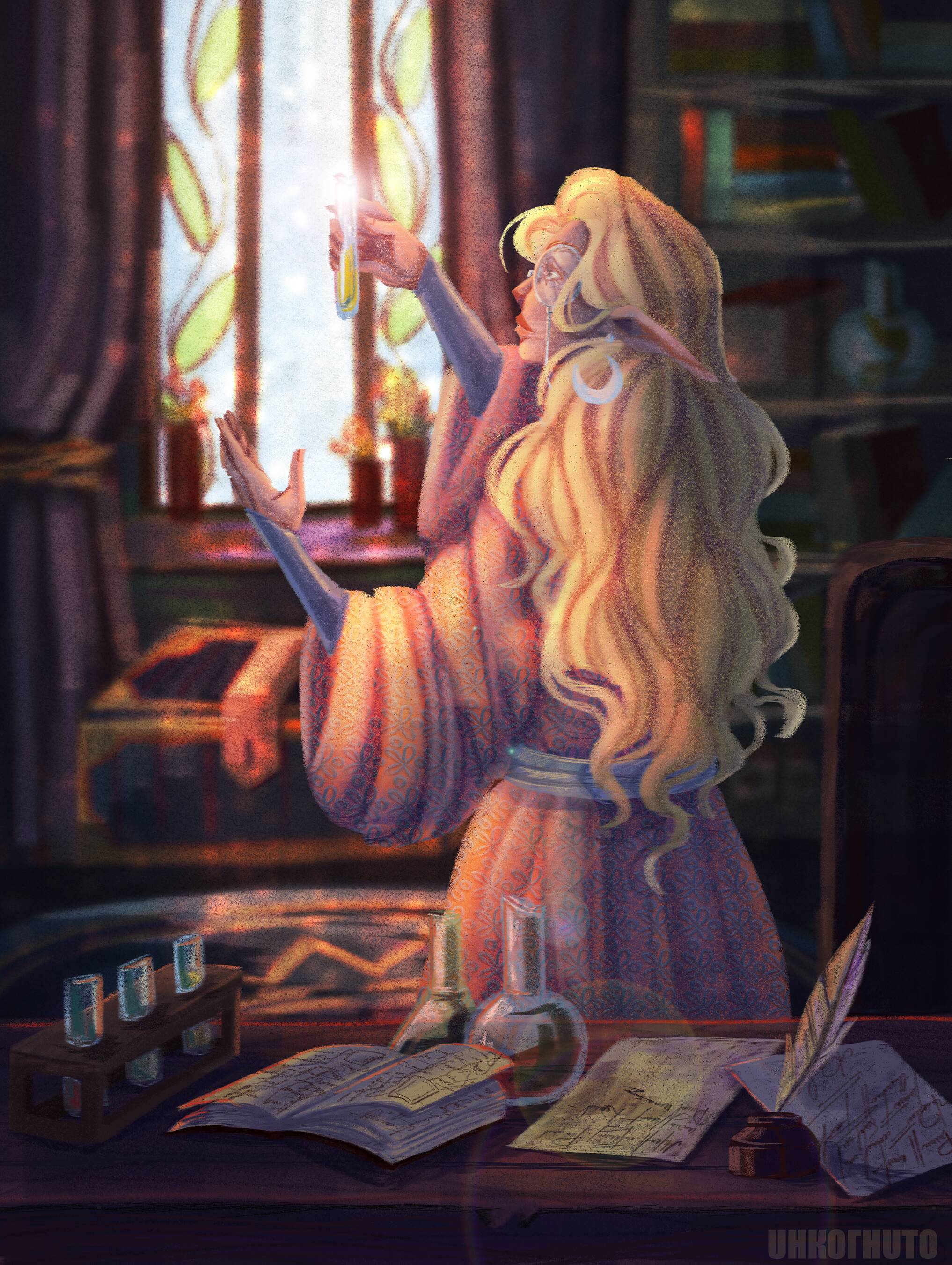 Её лаборатория - крепость из сушёных растений, колб и страниц пергамента. Здесь она изучает яды, травы и болезни. Но многие свои открытие она уничтожает, едва заслышав шаги Марлина - её страх перед тираном глубже, чем желание славы.