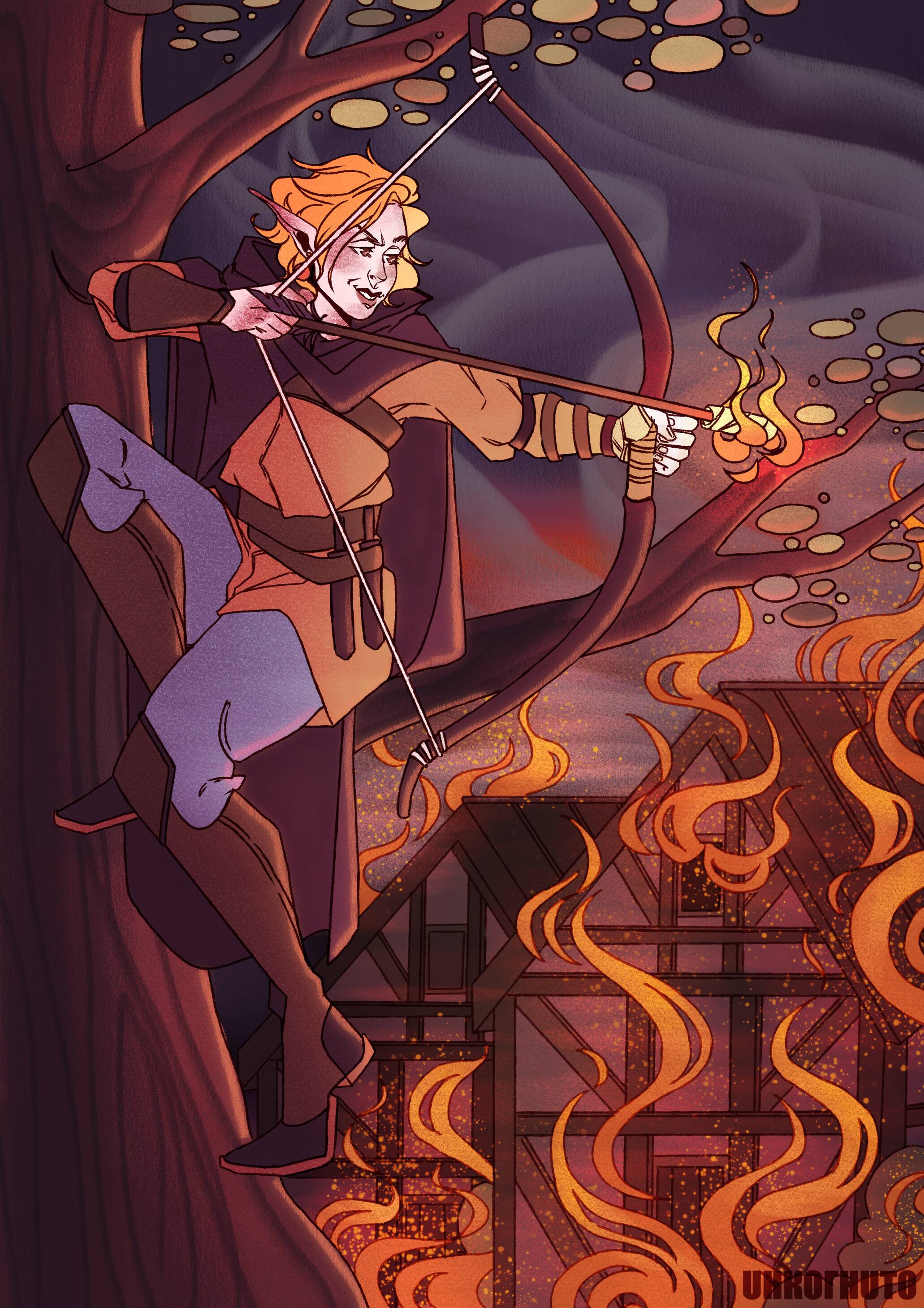 Черевичка - клинок, выкованный Марлином из пепла сожжённой эльфийской общины. Его детство оборвали цепи работорговцев, а «спасение» обернулось новой клеткой. Его лук из чёрного дерева бьёт беззвучно, а кинжалы «Зуб» и «Коготь» в ближнем бою оставляют раны глубже, чем память о детстве. Неровно подстриженные волосы, выгоревшие на солнце, - единственное напоминание, что когда-то он не боялся света.