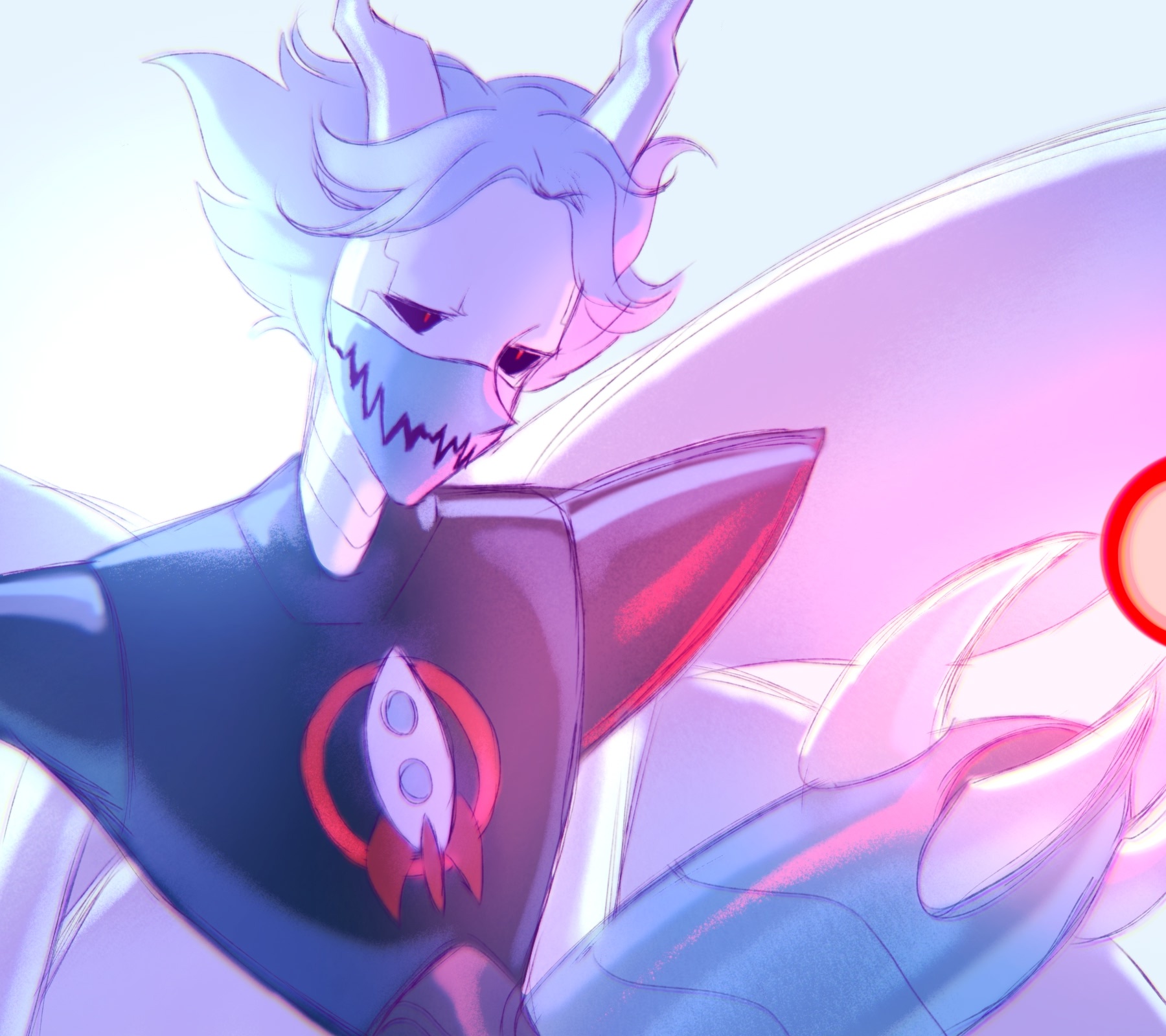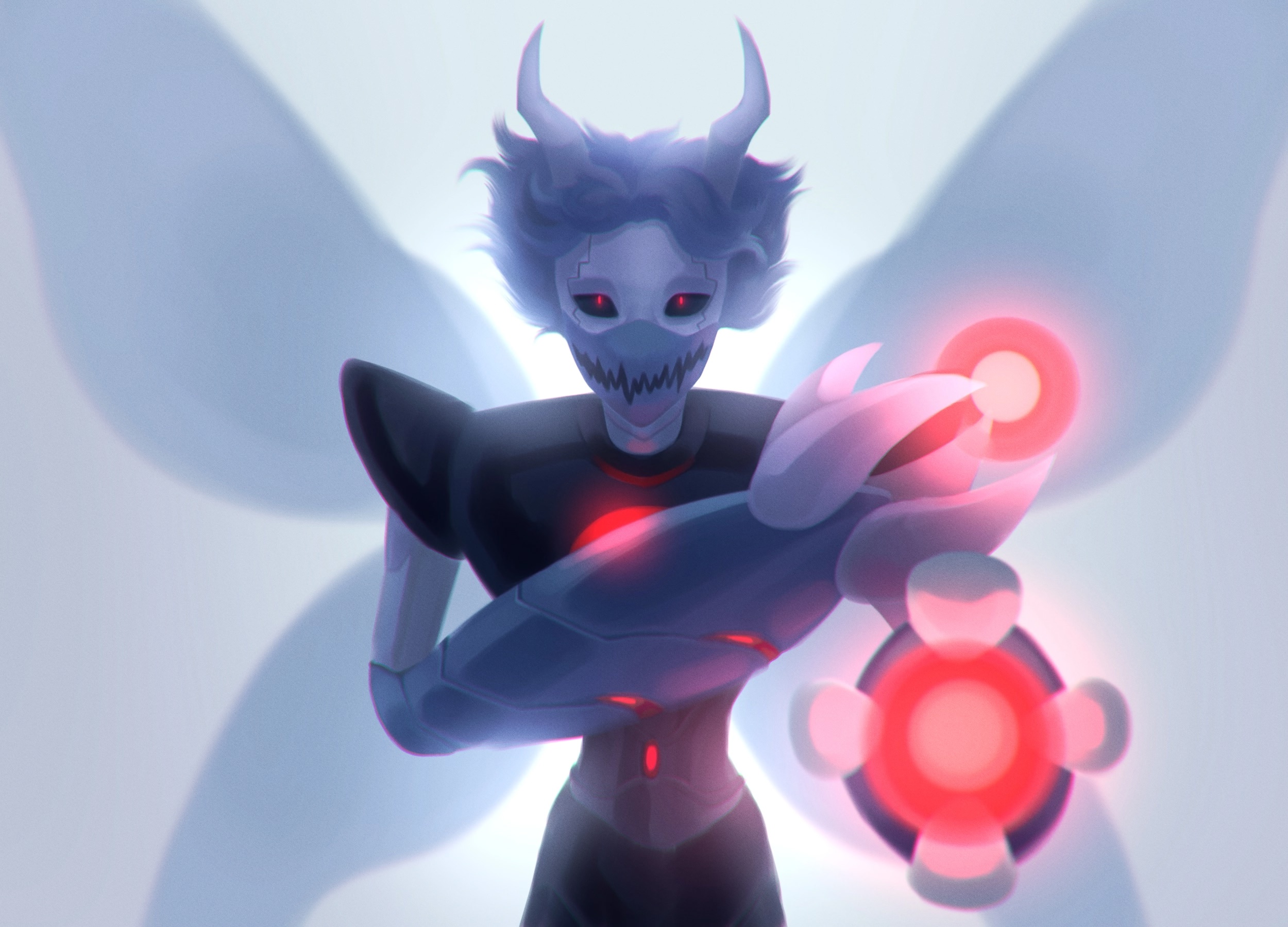 Здесь у Созерцателя нет травм, потому что мне хотелось показать этим рисунком счастливую концовку, когда планета Литен и звезда Душа восстановились после победы над злом...
