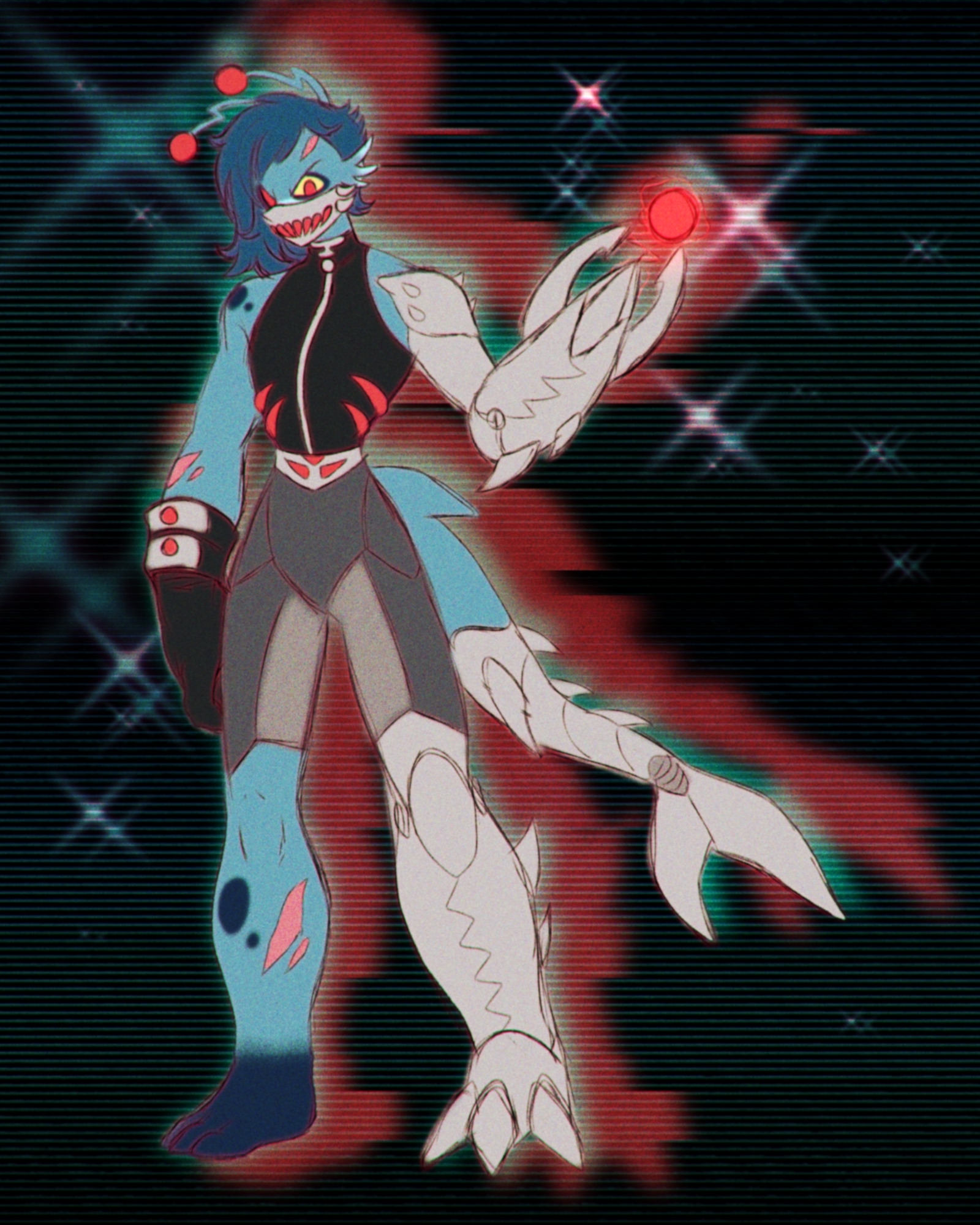 Я всё это время рисовала его с закрытой грудкой, хотя мужчины-клиолум предпочитают её показывать, чтобы привлекать дам. Но у Фокусника иная философия.